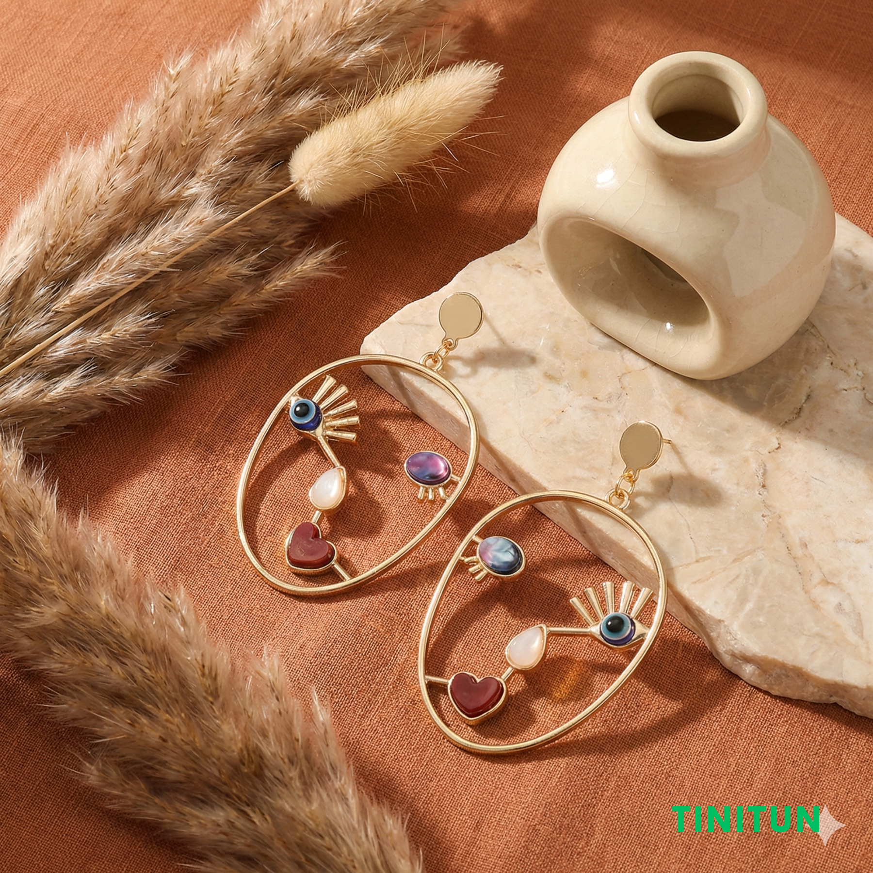 Великі та легкі сережки-контури, що малюють у повітрі абстрактний портрет у стилі Пікассо.