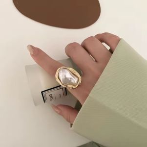 Ефектна масивна каблучка з центральною вставкою у вигляді великої барокової перлини.