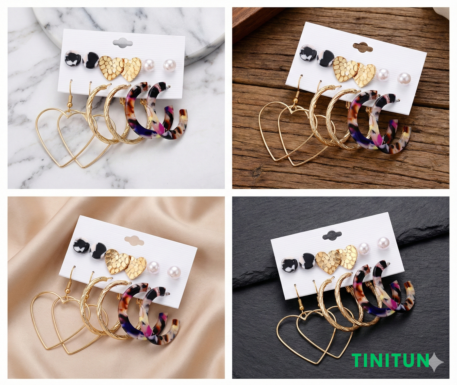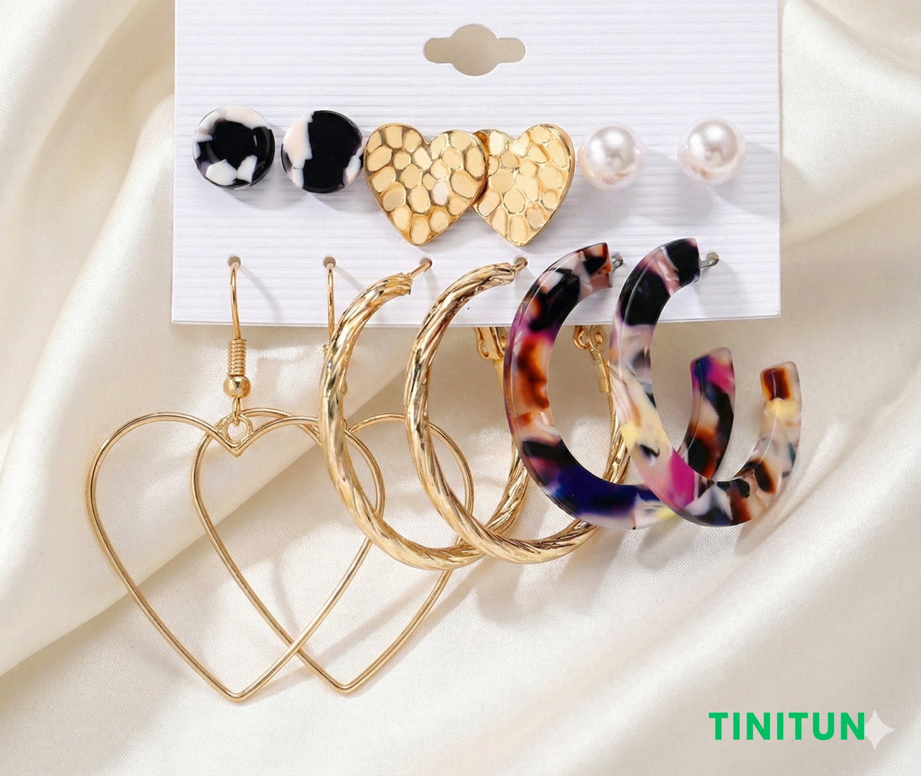 Включає романтичні серця, класичні перлини, трендові акрилові кільця та золотисті конго