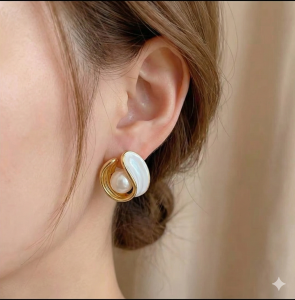 Ці сережки нагадують дорогоцінну мушлю, що дбайливо зберігає свій скарб — сяючу перлину.