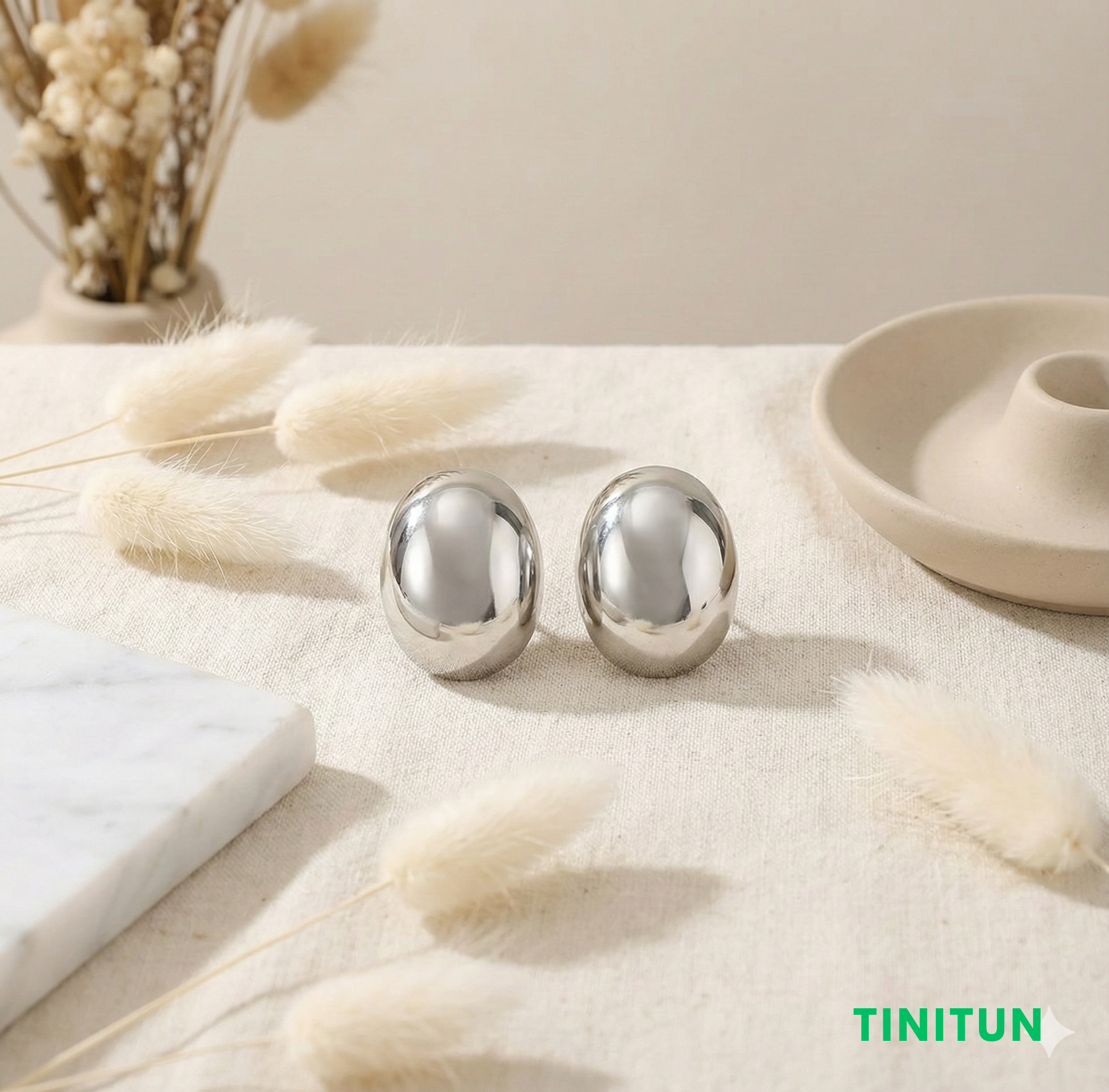 Зустрічайте головний бестселер сезону в магазині Tinitun — об'ємні сережки-краплі у кольорі срібло.
