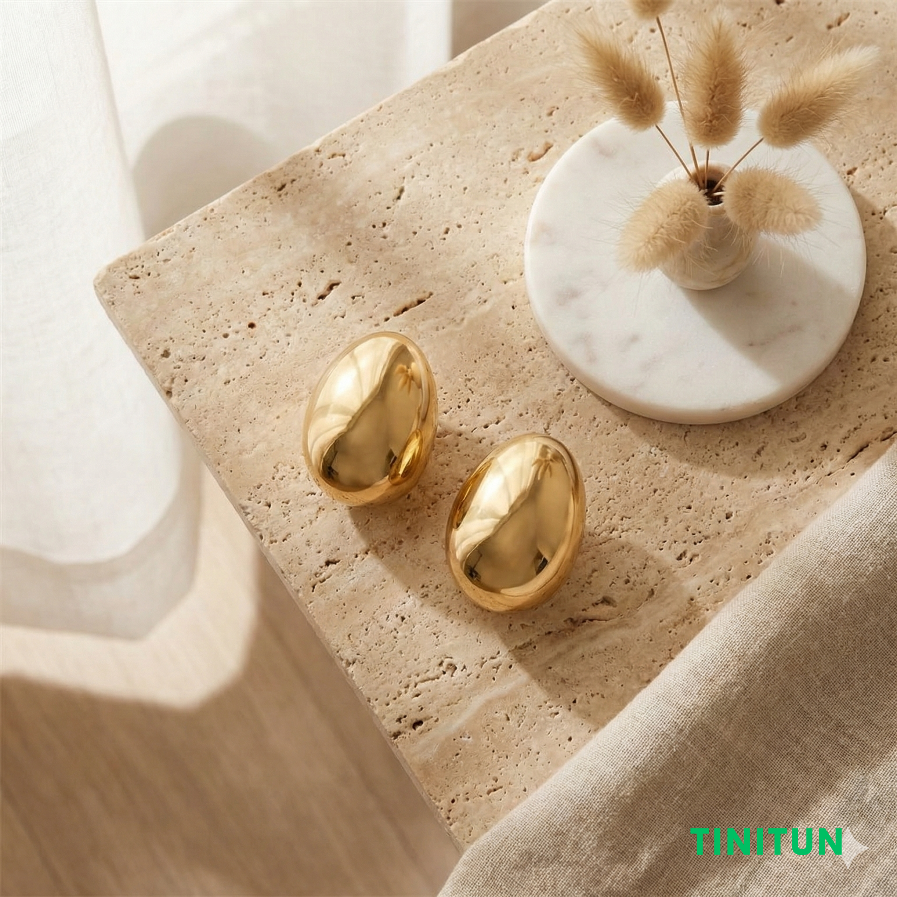Зустрічайте головний бестселер сезону в магазині Tinitun — об'ємні сережки-краплі у трендовому золотому кольорі.