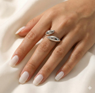 Дві витягнуті форми, що нагадують стилізовані листочки або пелюстки, ніби обіймають палець, не змикаючись до кінця.