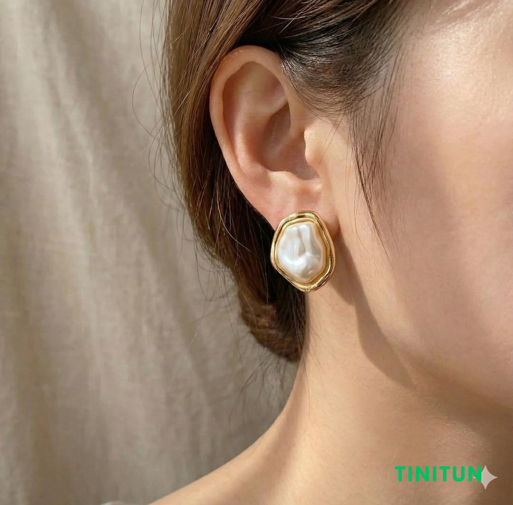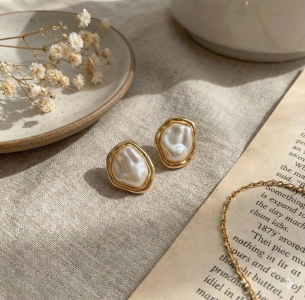 Трендовий дизайн у стилі Old Money поєднує сяйво перламутру неправильної форми та ефектну оправу з «м'ятого» золота.