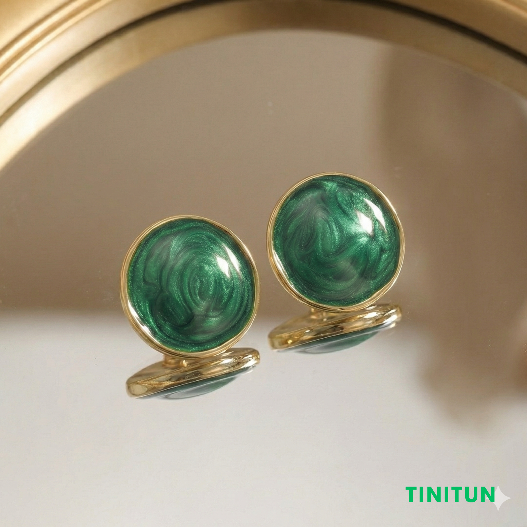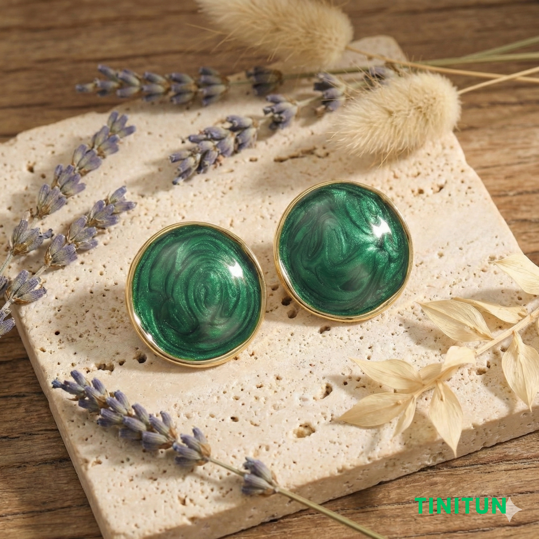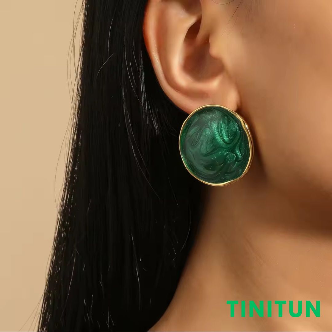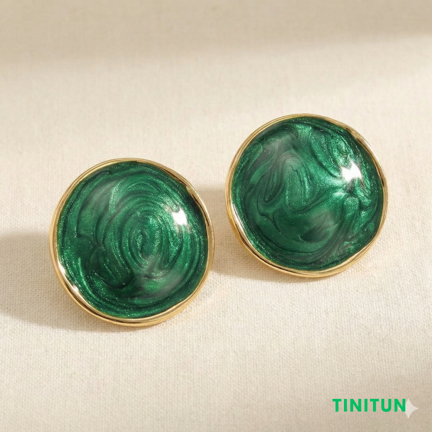 Магія смарагдового відтінку у вінтажному стилі! Великі круглі пусети з ефектним емалевим покриттям, що нагадує візерунок натурального малахіту.